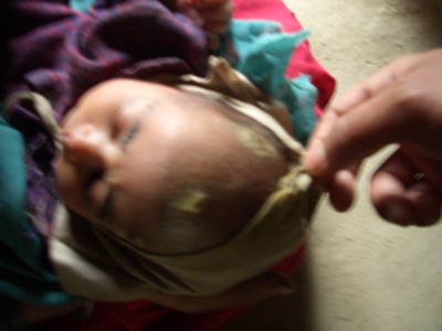 Remember how difficult it is to open a child proof bottle. Raju is teaching a young mother how to open the bottle. |