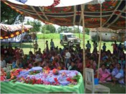 Women are listening to Patti's demonstration on how to brush their teeth. We used the small tent in the back for Patti to give personal counseling to women after the workshop. This picture shows the high turnout for this event.