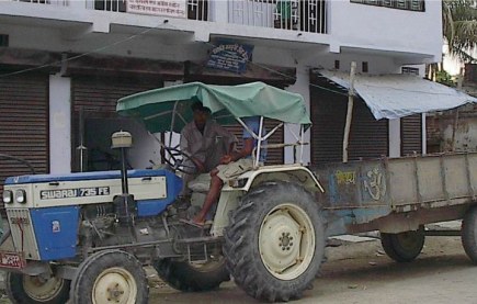 The top picture on the left shows a tractor on it's way to collect sand and gravel for filters from a river near Butwal.